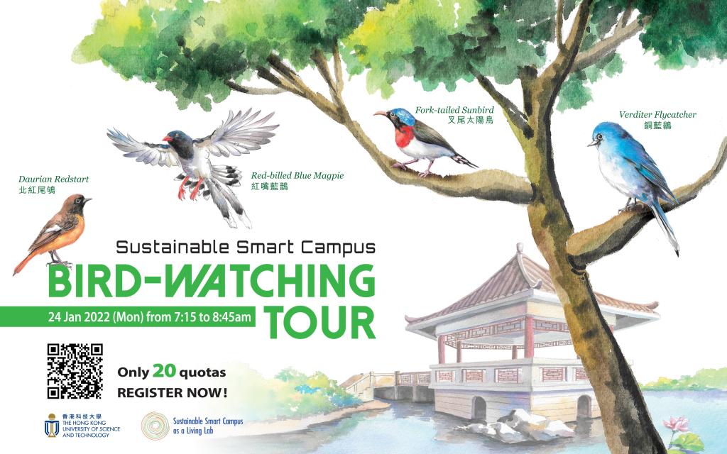 Due to the overwhelming response of the bird watching tour, we decided to organize the second tour on 24 Jan 2022 (Mon), 7:15 am-8:45 am with 20 quotas. The tour is open to all students, staff, and residents. Click the registration link to book the tour today!